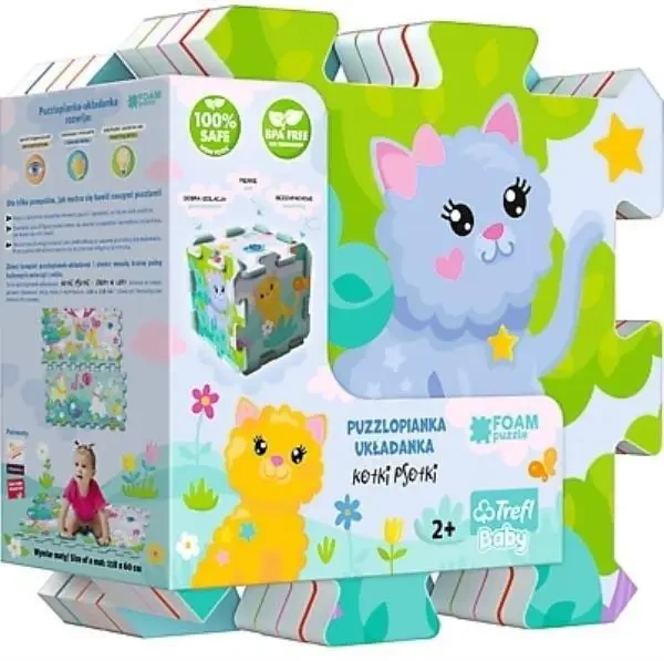 Puzzlopianka Kotki Psotki TREFL to niesamowita edukacyjna zabawka, która łączy w sobie funkcję układanki i miękkiej maty. Ten zestaw puzzli składa się z dużych, kolorowych, miękkich i bezpiecznych elementów, które zachęcają dzieci do twórczej zabawy i rozwijania umiejętności. Bawiąc się puzzlopianką, dzieci odkrywają świat kształtów i kolorów, ucząc się rozpoznawania różnorodnych form. Układając poszczególne części, dziecko może stworzyć figury przestrzenne, takie jak kostka czy pudełko, a także posłużyć się nimi jako miękką podkładką na podłogę. Głównym celem edukacyjnej zabawki Puzzlopianka Kotki Psotki TREFL jest rozwijanie spostrzegawczości, rozumienia kształtów, kolorów, a także trening wyobraźni. Zabawa tą układanką pobudza dzieci do twórczych działań, które mają pozytywny wpływ na ich rozwój. Z dbałością o utrzymanie czystości puzzlopianki, można ją w łatwy sposób wyczyścić za pomocą mokrej ściereczki. W ten sposób zabawka zawsze będzie świeża i gotowa do zabawy. Zestaw Puzzlopianka Kotki Psotki TREFL to znakomity wybór dla dzieci w różnym wieku, które interesują się kształtami, kolorami i układaniem puzzli. To świetna propozycja na prezent bądź dla własnego dziecka, która łączy zabawę i naukę w jednym.EAN: 5900511612622