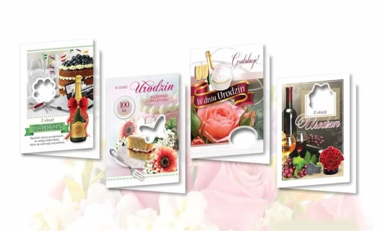 Na płaszczyźnie tych karnetów prezentują się eleganckie życzenia urodzinowe, które wyrażają ciepłe i szczere sentymenty.Dołączona koperta dla każdego karnetu