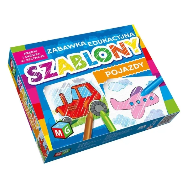 Ten komplet zawiera praktyczne szablony, które służą do łatwego i szybkiego narysowania 8 różnych pojazdów. Istnieje możliwość skorzystania ze szablonu z konturem zewnętrznym lub wewnętrznym. Aby stworzyć obrys, trzeba użyć ołówka, kierując się szablonem położonym na arkuszu papieru z dołączonego do zestawu notatnika.