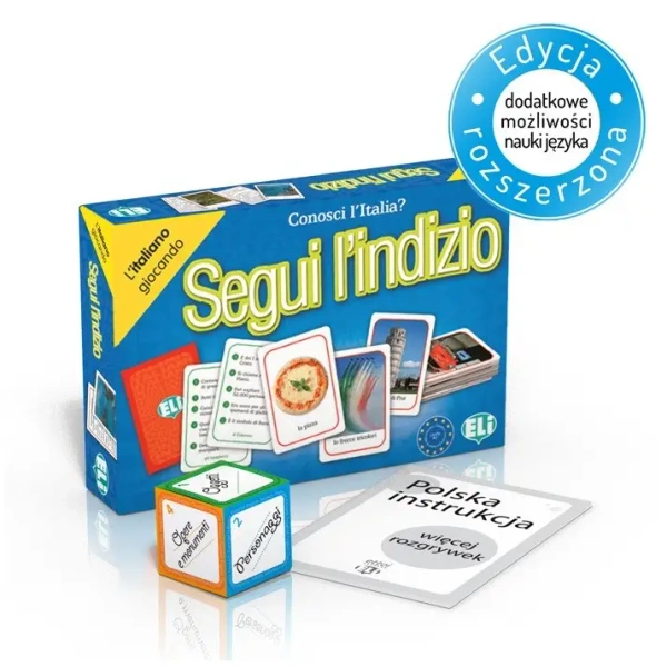 Segui l'indizio to fascynująca gra językowa o narciach cywilizacyjno-kulturowych. Dzięki niej gracze mają możliwość aktywnego rozwijania swojej umiejętności języka włoskiego na poziomie A2, jednocześnie poznając charakterystyczne miejsca, zabytki, osobistości, wytwory kultury oraz kulinaria z Włoch. Principi di gioco: