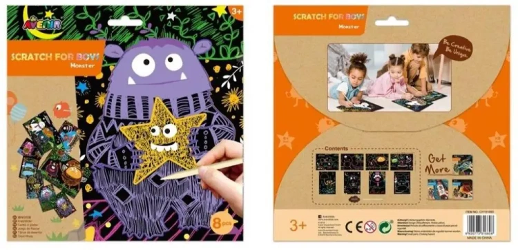 - kolorowe muliny do dekoracji gotowych prac. Dzięki Wydrapywance Potwór Avenir, dzieci będą mogły nie tylko rozwijać swoje umiejętności ręczne i kreatywne, ale także poznawać nowe techniki artystyczne oraz zdobywać wartościowe doświadczenia sensoryczne w bezpieczny sposób. Zapewnij swojemu dziecku wyjątkową rozrywkę i kreatywną zabawę z Wydrapywanką Potwór Avenir!