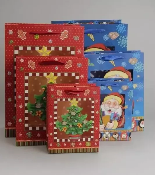 Torebka Świąteczna z Okienkiem Pionowa Mała - Mix Wzorów
