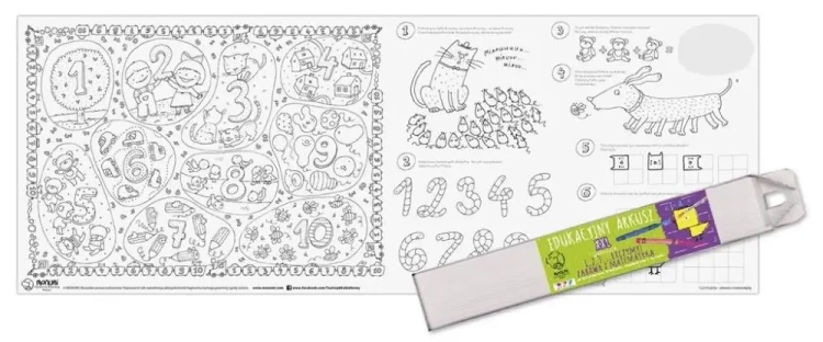 Dzieci uwielbiają bawić się i ten fakt wykorzystaliśmy, aby dostarczyć im produkt łączący zabawę z nauką. Prezentowany XXL Arkusz Edukacyjny stanowi doskonałe połączenie kolorowanki ze skutecznym narzędziem uczenia się. Dzieci nie tylko będą mogły rozwijać swoje zdolności artystyczne, kolorując ogromną powierzchnie (160 cm x 60 cm) kredkami, flamastrami lub farbami, ale jednocześnie uczą się poprzez gry i zabawy.Arkusz Edukacyjny pomoże w nauce pierwszych lekcji