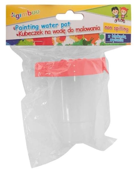 Twórczym małym artystom i uczniom oferujemy kombinację wygody i bezpieczeństwa - przemyślanie zaprojektowany, plastikowy kubeczek na wodę z blokadą przeciwko wylewaniu i pokrywką.